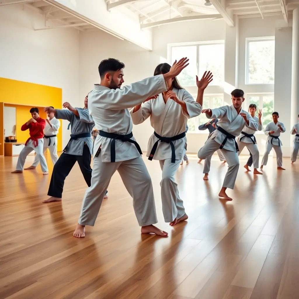 An image showcasing Goshin-Budo practitioners demonstrating self-defense techniques, highlighting practical application.